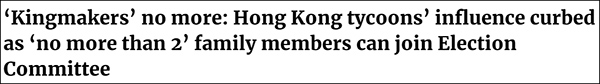 港媒:香港富豪被限制選舉委員會名額,每個家族最多2名