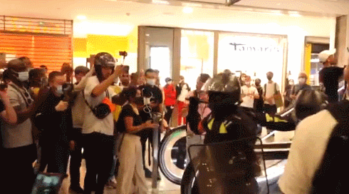 視頻中,至少6名警察在商場地下的地鐵站內追捕兩名女性,用防爆盾和警棍圍毆她們,並將其中1人打倒在地。其中1名警察還阻撓圍觀人羣攝像。