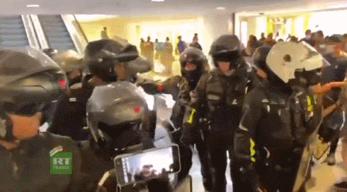 但為了恢復公共秩序,法國政府部署了“BRAV-M”防暴警察部隊。社交媒體上流傳的視頻顯示,警方在商場地下和示威者對峙,但並未阻止他們上樓,甚至在示威者的噓聲中被逼上電動扶梯。
