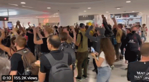 法國民眾已經連續8個星期的週末抗議總統馬克龍推行的“健康通行證”(health pass)等防疫政策。4日(週六),巴黎有數百人強行闖入市中心的一座商場——雷阿爾集市廣場(Forum des Halles)。這個商場在地下和地鐵站“夏雷特-大堂站”相連通。人羣一邊高呼“ LIBERTÉ!”(自由),一邊鼓掌。