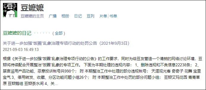 而豆瓣官方賬號@豆嬤嬤 並未對此事進行通報或回應,最新貼文停留在9月3日《關於進一步加強“飯圈”亂象治理專項行動的處罰公告》。