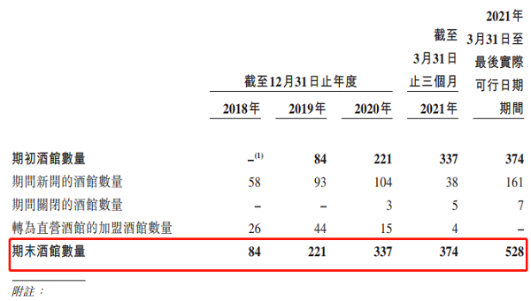 2018年至最後實際可行日期,海倫司旗下直營酒館數量由84家增長至528家,僅三年多時間,門店數量竟增長了超6倍。