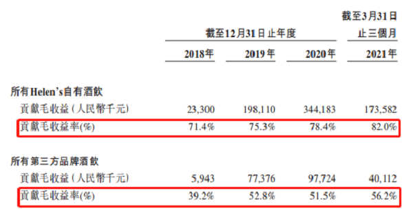 以“自有產品+外部產品”為產品矩陣的海倫司,自有酒飲佔總營收比近7成。招股書顯示,2018年至2021年一季度,海倫司自有酒飲營收佔總營收的比例分別為68.4%、64.2%、69.8%和74.8%。