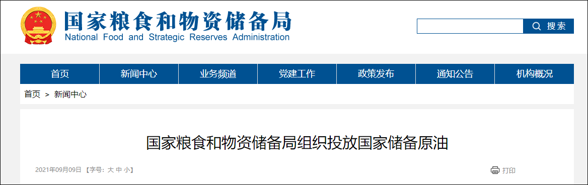 國家糧食和物資儲備局網站9月9日消息,經國務院批准,國家糧食和物資儲備局首次以輪換方式分期分批組織投放國家儲備原油。本次投放主要面向國內煉化一體化企業,用於緩解生產型企業的原材料價格上漲壓力。