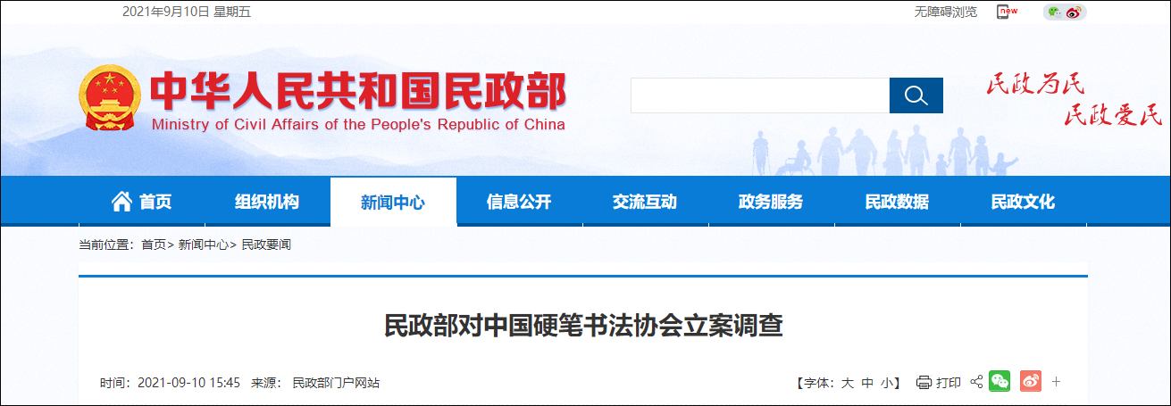 瞭解到這一情況後,民政部高度重視,立即約談了中國硬筆書法協會有關負責人,對該會相關活動情況及分支機構、代表機構設立等問題進行初步核查。