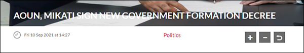 米卡提當天將24人的內閣名單呈交給總統米歇爾·奧恩,獲得後者批准。兩人在首都貝魯特簽署了組建政府的法令。他在隨後的全國講話中表示將努力阻止“國家的崩潰”:“情況非常困難,但如果我們團結起來,就不是不可能應對。”