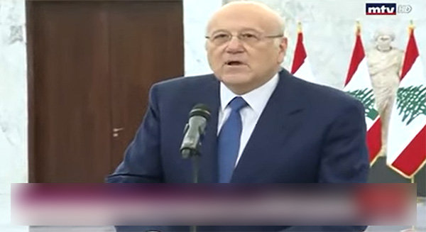 黎巴嫩總理米卡提發表講話,視頻截圖