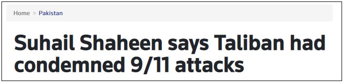 沙欣説,“我記得我們譴責了這一事件,並告訴美國,沒有阿富汗人蔘與其中”。當時阿卜杜勒·薩拉姆·扎伊夫是駐巴基斯坦大使,我是助理。我們召開了新聞發佈會,譴責了這一事件。我們説過,我們將配合找出幕後真正的罪犯。”