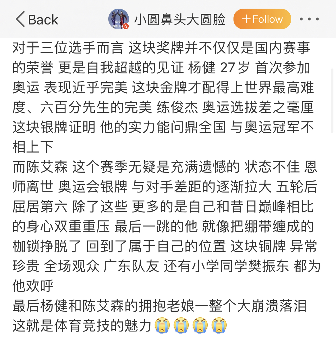 有網友感嘆,對這三位選手而言,這塊獎牌“不僅僅是國內賽事的榮譽”,“更是自我超越的見證”。