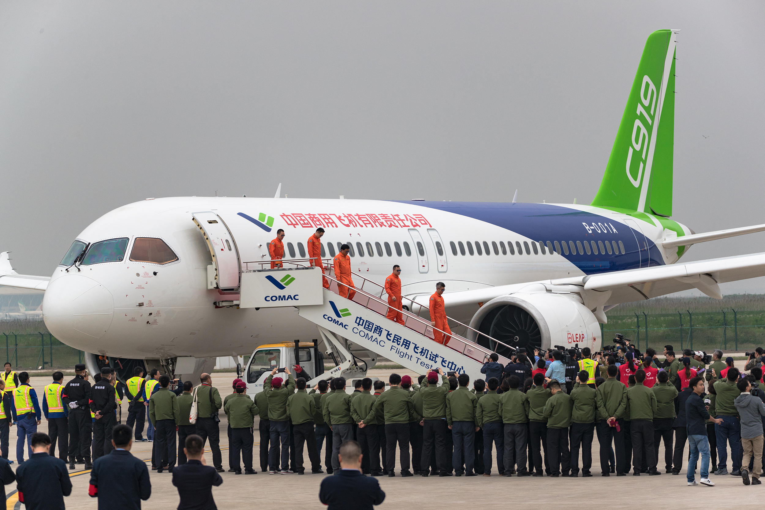 據此前媒體報道,C919民航飛機是中國商用飛機有限責任公司成立後的主打機型,也是我國首款完全按照國際先進適航標準研製的單通道幹線150座級大型客機,常被稱為我國的“大飛機”,最多可以乘坐168人,最大航程超過5500公里,該飛機立項於2007年2月,2017年5月5日成功首飛。
