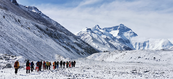 2020年4月30日,華為員工在珠峯安裝全球海拔最高的5G基站