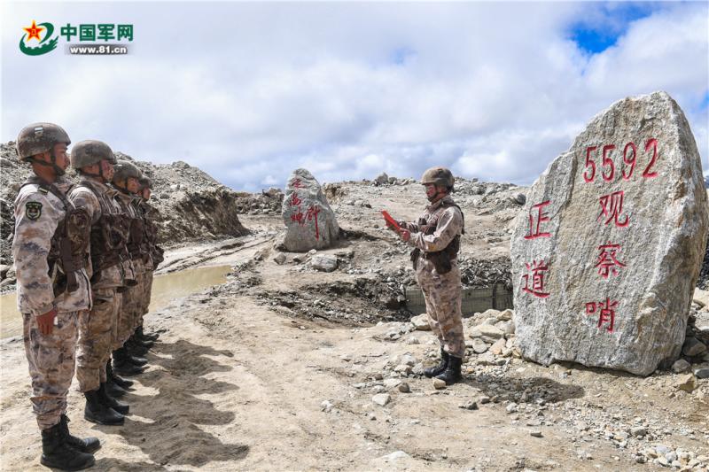 5592觀察哨官兵利用執勤間隙學習習主席回信精神。陶雲波 攝