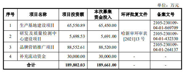 而在敷爾佳此次募集18.96億的資金 中,僅有5691萬用於“研發及質量檢測中心建設項目”,而在“品牌營銷推廣項目”上,該公司預計將花費8.85億元,約佔總募資的47%。