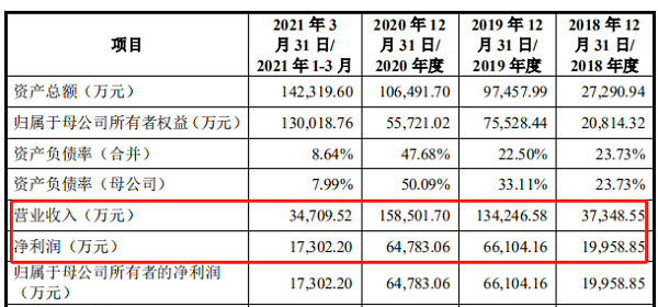2018年至2020年,敷爾佳的營業收入分別為3.73億元、13.42億元以及15.85億元;淨利潤分別為1.99億元、6.61億元和6.48億元。