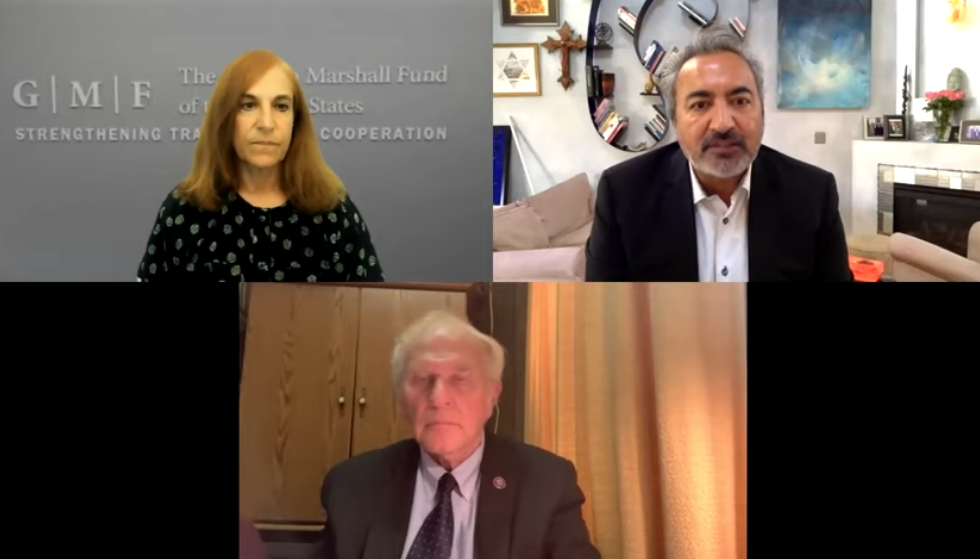 當地時間14日,葛來儀(左上)貝拉(右上)和夏伯特(下)出席GMF線上會議