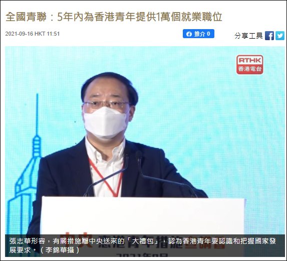 港媒:全國青聯5年內為香港青年提供1萬個就業崗位