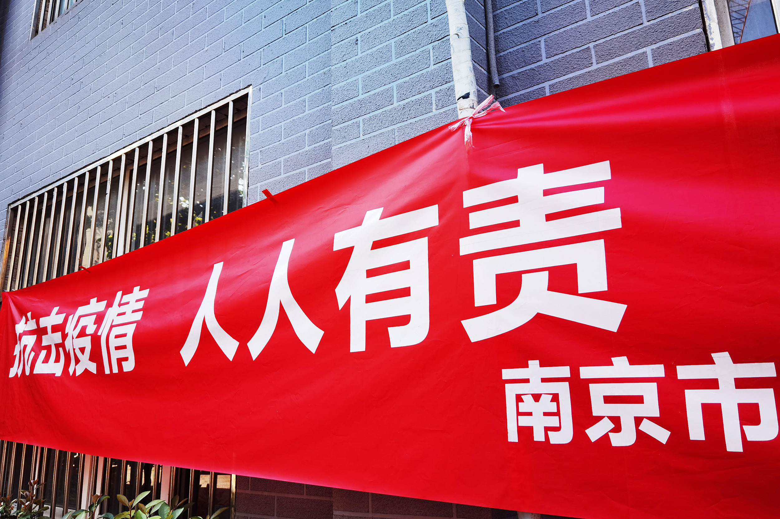 7月30日,南京街頭懸掛的新冠肺炎疫情防控標語 圖源:視覺中國