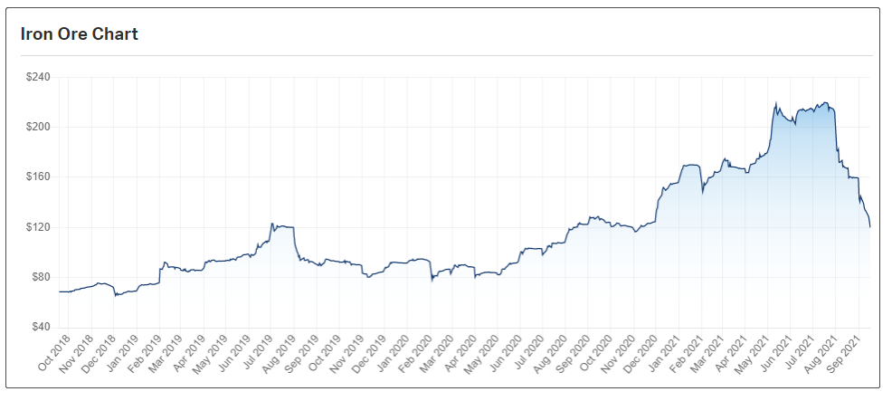 澳大利亞鐵礦石是一路下跌。來源:Market Index