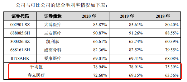 即使毛利率如此增長,春立醫療的毛利率水平依然低於同行公司的平均水平。