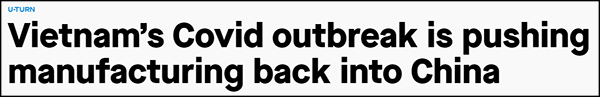 在過去幾年裏,許多外國企業逐步將製造業務從中國向周邊年的東南亞國家遷移,越南則是其中最為熱門的目的地之一。但如今,在嚴峻的新冠疫情打擊下,越南各地的工廠被迫關門歇業,這使得許多企業的製造業務又開始向中國迴流。