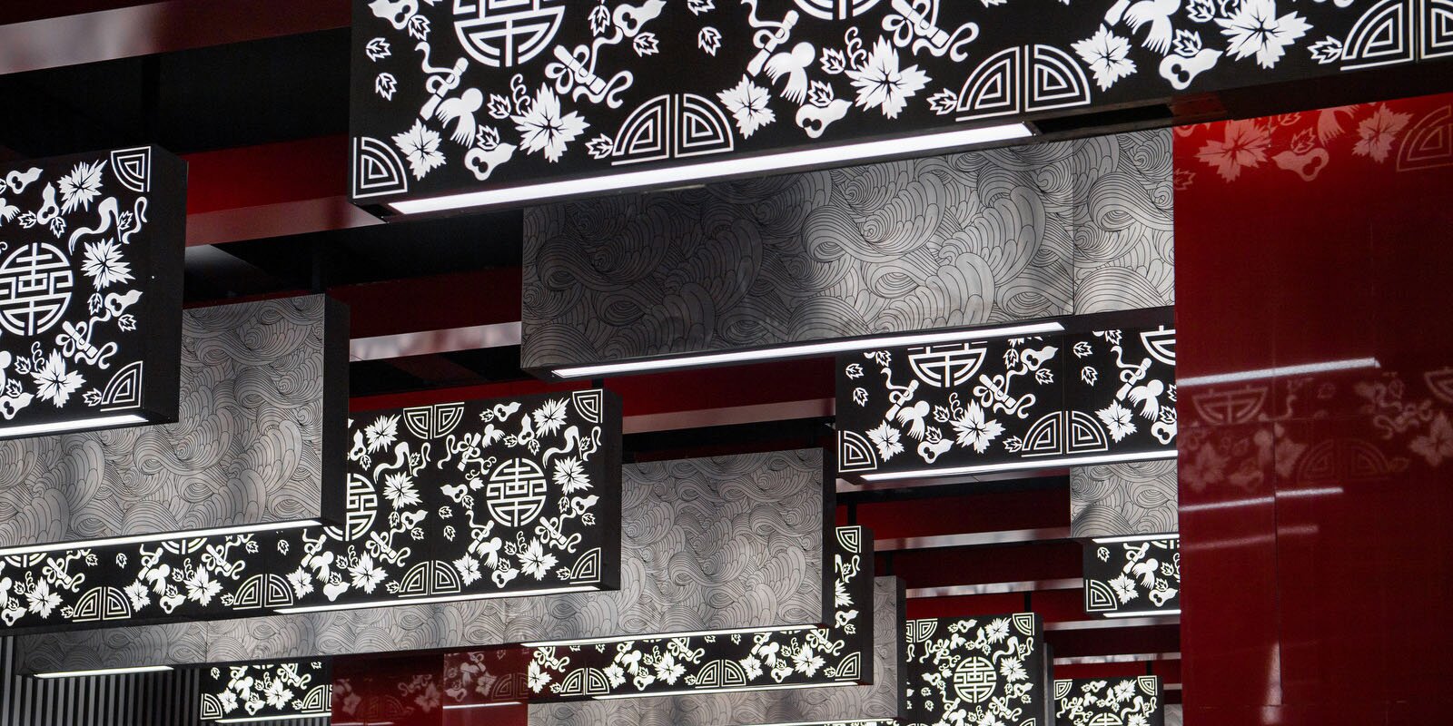 但車站內部讓有些網友覺得畫風“詭異”——天花板下的燈光面板,裝飾用的中國傳統吉祥圖案似乎被設計成了“黑白色調”。