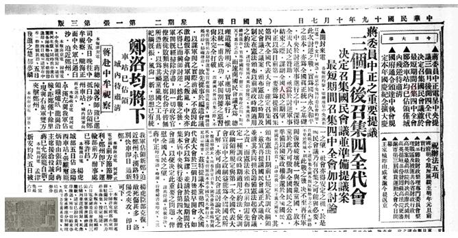 胡適在10月7號的日記中剪報黏貼了《蔣請開國民會議之江電》,但沒有評論。