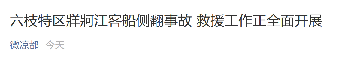 今日早些時候,中共六盤水市委宣傳部官微“微涼都”發佈消息稱,9月18日17時許,六枝特區牂牁江發生一起客船側翻事故。截至9月19日11時,共搜救出40人,其中31人安全,9人救治無效死亡,經排查,仍有6人失聯。客船駕駛員楊某某已在事故中死亡。