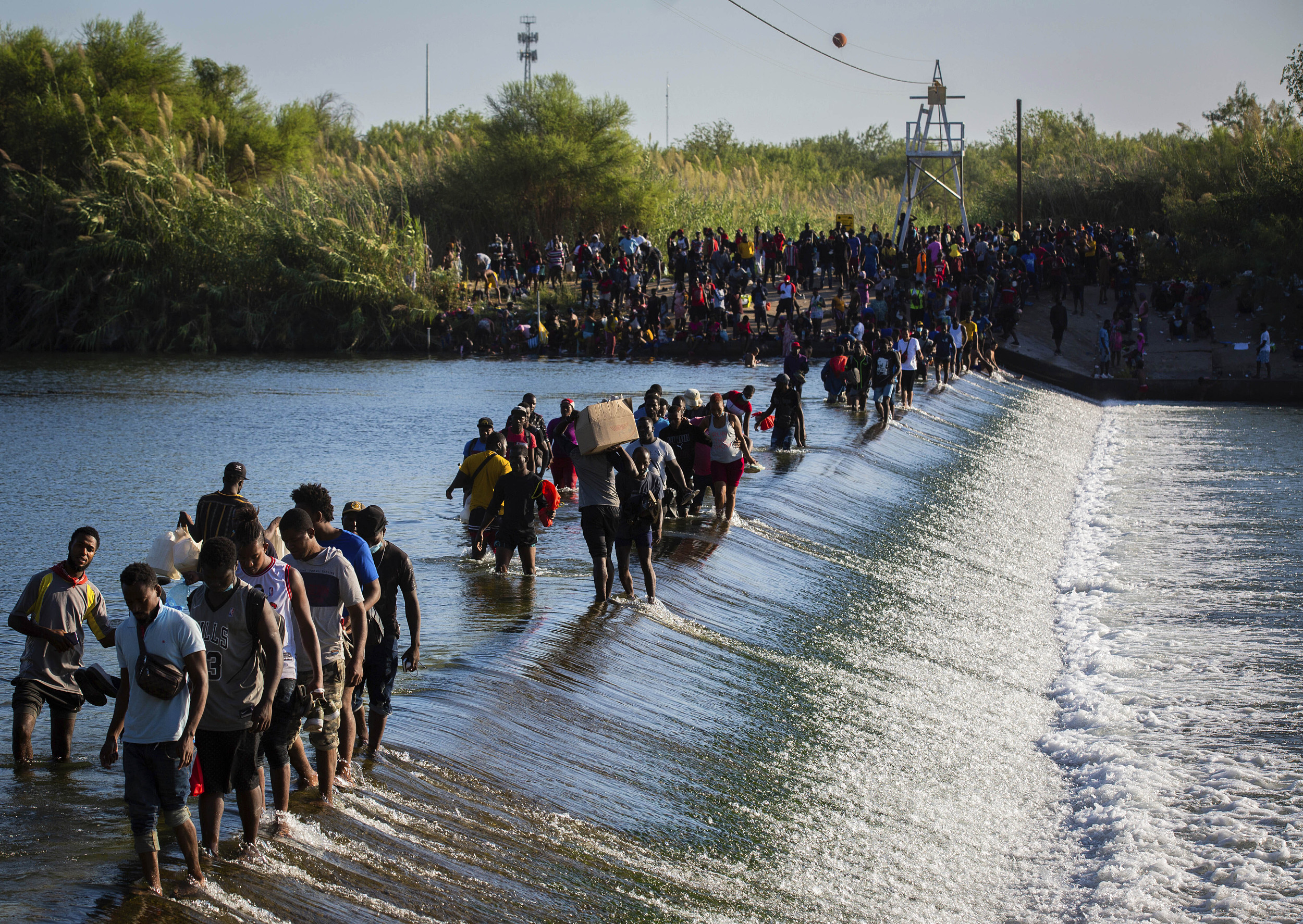 近日,大批海地移民從墨西哥涉水進入美國 圖自人民視覺