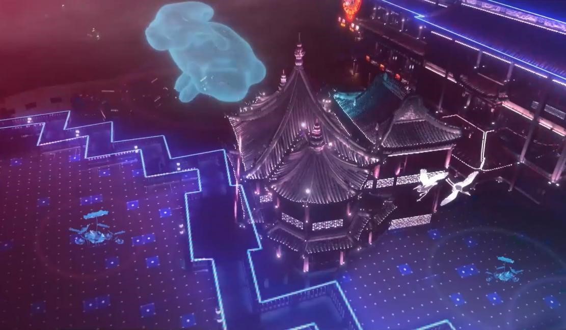 當鏡頭跟隨小女孩的目光,將視線穿越雲層,透過金光閃耀的餘暉,那潛藏在時間空洞裏的通道被瞬間打開,由此引發的國風大賞,也成了當夜的焦點。