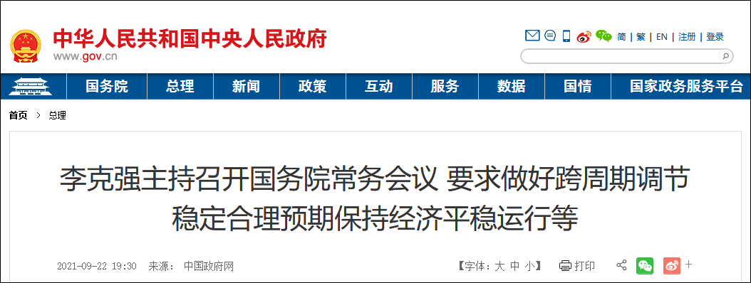 據中國政府網消息,國務院總理李克強9月22日主持召開國務院常務會議,要求做好跨週期調節,穩定合理預期,保持經濟平穩運行;審議通過“十四五”新型基礎設施建設規劃,推動擴內需、促轉型、增後勁;部署加快中小型病險水庫除險加固,提升供水和防災減災能力。