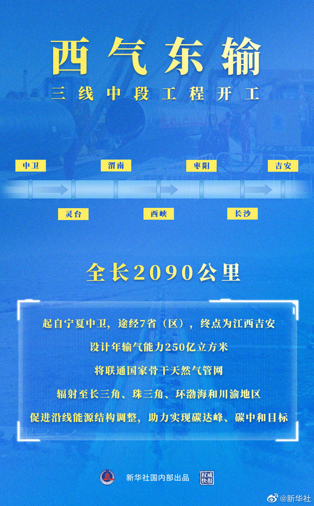 據新華社9月23日報道,23日,西氣東輸三線中段(中衞-吉安)工程在寧夏中衞正式開工建設。