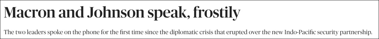 英法領導人在潛艇風波後首次通話 美媒:氛圍“冷淡”