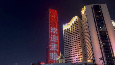 深圳灣一號、平安金融中心、京基100、漢國大廈、中國華潤大廈齊齊亮燈,用璀璨燈光歡迎孟晚舟回家。