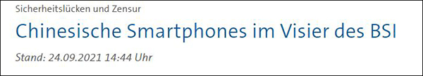 “德國聯邦信息安全辦公室(BSI)的一名發言人24日證實,德國已對某些中國手機啓動安全方面的相關調查。”《政客》(Politico)新聞網9月25日報道稱,“此項調查是在收到立陶宛方面針對小米等中國手機存在安全漏洞方面的指控後啓動的”。