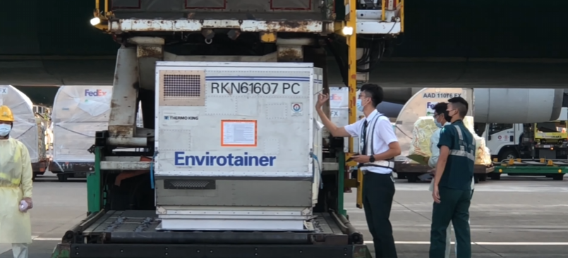 斯洛伐克捐贈給台灣的16萬劑AZ疫苗於26日上午抵達桃園國際機場 圖源:視頻截圖