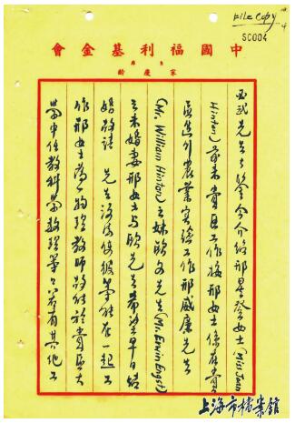 宋慶齡在信中介紹:“邢女士(即寒春,筆者注)系在貴區進行農業實驗工作邢威廉先生(即韓丁,筆者注)之妹,歐文先生(即陽早,筆者注)之未婚妻。邢女士與歐文先生希望早日結婚,故請先生設法使彼等能在一起工作。”信中還細緻地建議,“邢女士為一物理教師,故能於貴區大學中任教科學數理等。若有其他工作,邢女士亦極願刻苦耐勞以赴之。望先生能鼎力玉成是盼。”