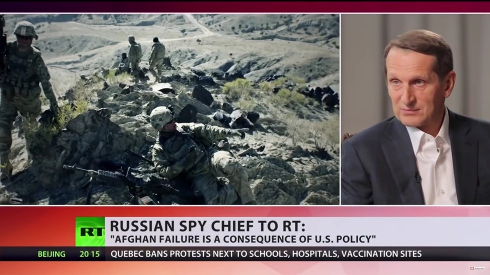 (觀察者網訊)今日俄羅斯(RT)9月27日消息,俄羅斯對外情報局局長謝爾蓋·納雷什金當天向該頻道表示,美國在阿富汗的失敗是由於其錯誤估計了自己的實力,並試圖在外國建立本國的社會模式。