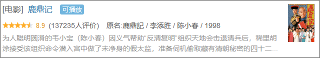 一部劇口碑如何,主角顏值往往並非決定性因素。例如,同樣是《鹿鼎記》的翻拍,陳小春版的豆瓣評分8.9,黃曉明版的評分還沒破6。