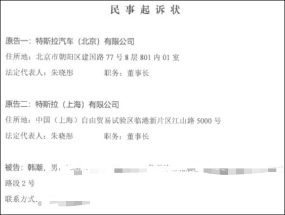特斯拉認為,韓潮從2020年初開始通過新浪微博長期發表詆譭、貶低特斯拉的相關言論,其行為已嚴重侵害了特斯拉公司的法人名譽權。