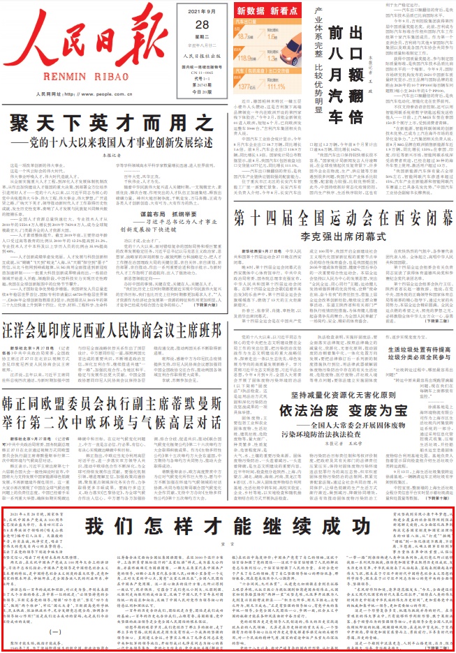 人民日報刊發“宣言”文章:我們怎樣才能繼續成功