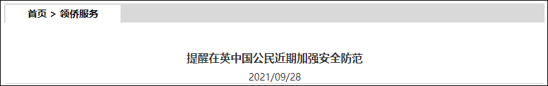 中國駐英國使館提醒在英中國公民近期加強安全防範,外出時務必提高警惕,遇不良分子挑釁,儘快設法脱身,記住對方體貌特徵並及時報警。報警後請將案件編號和案發經過通報中國駐英使領館,以便中國駐英使領館跟蹤有關案件處理進展。緊急情況下請聯繫中國駐英國使領館尋求協助。