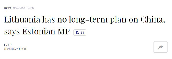 愛沙尼亞議會外委會主席:立陶宛在對華外交上沒有長遠計劃