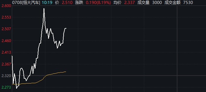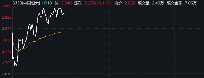 截至發稿,恒大港股盤中拉昇,現漲幅已超10%。