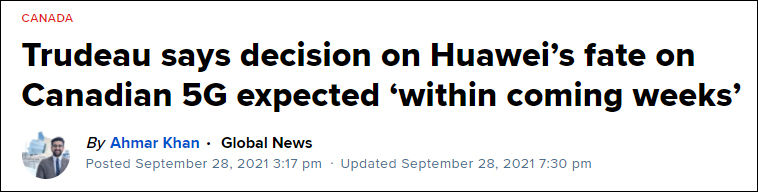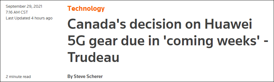 (觀察者網訊)綜合路透社、加拿大“環球新聞”9月29日報道,加拿大總理特魯多28日稱,可能會在“未來幾周”決定,加拿大是否要像“五眼聯盟”其他成員那樣禁用華為5G設備。