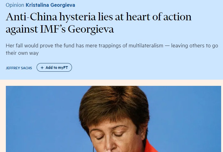 9月27日,“休克療法”之父,哥倫比亞大學可持續發展中心主任傑弗裏·薩克斯(Jeffrey Sachs)在英國《金融時報》上發文,聲援深陷“給中國提《2018年營商環境報告》排名”風波的國際貨幣基金組織(IMF)總裁克里斯塔利娜·格奧爾基耶娃(Kristalina Georgieva)。