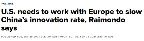 會前,美國商務部長吉娜·雷蒙多(Gina Raimondo)接受美媒採訪時放出話稱,為了向世界第二大經濟體中國施加壓力,美國需要與自己的盟友——歐洲進行合作,以放慢中國創新的“腳步”。
