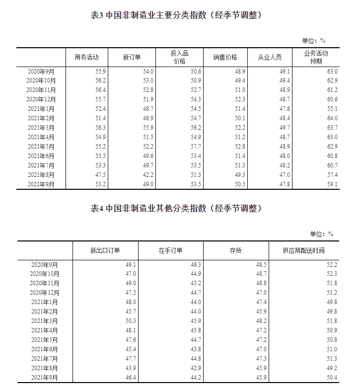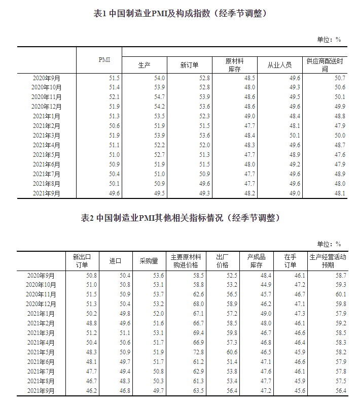 國家統計局網站9月30日消息,國家統計局服務業調查中心中國物流與採購聯合會公佈2021年9月中國採購經理指數運行情況。