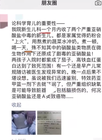 據@四川日報 29日消息,一個月內,成都市婦女兒童中心醫院收治了兩名中毒的新生兒,原因都是家屬覺得奶粉會“上火”,用熬煮的蔬菜水為寶寶衝奶,殊不知其中的硝酸鹽類物質在微生物作用下還原成了劇毒的亞硝酸鹽!兩名孩子在入院時皮膚髮紫,高鐵血紅蛋白達到致死範圍。