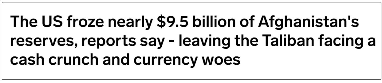 美國凍結了近95億美元的阿富汗儲備,使塔利班面臨現金緊縮和貨幣困境。來源:美國商業內幕 (Business Insider)