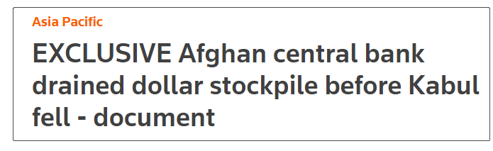 據路透社消息,該簡報稱:“阿富汗央行金庫中的外匯儲備已經耗盡,無法滿足……現金要求。”